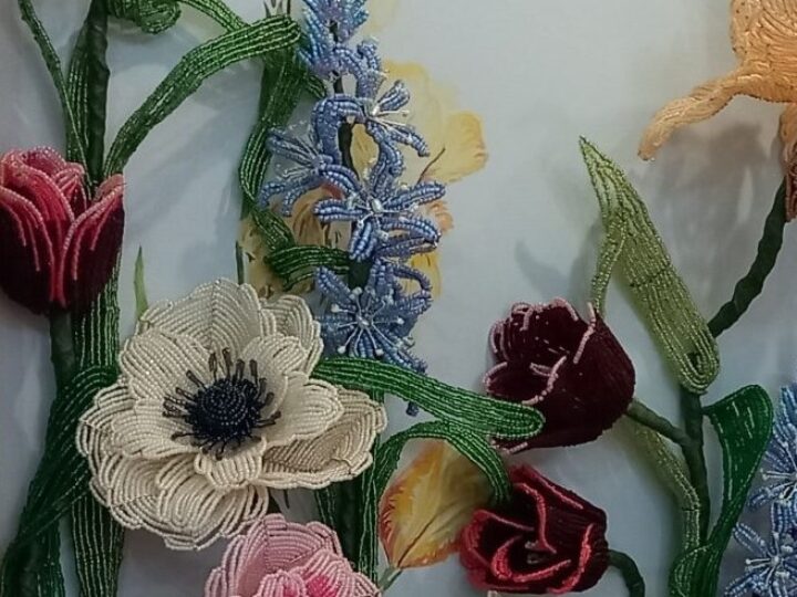 Beaded Blooms:Passion, Beauty and Trust, (detail) Holly Parr. Constructed using Venetian Glass Flower making techniques; a combination of twists, wraps and weaves.