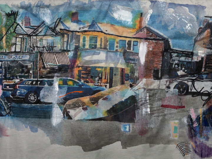 “The fabric pieces within ‘High Street’ aren’t literal or geographically exact. They’re imagined spaces – intuitively pieced together from remembered shopfronts, everyday textures and real walks up and down the High Streets of Wales. I hope everyone who sees the work will make their own connections, jogging memories and kick-starting stories.” Hâf Weighton