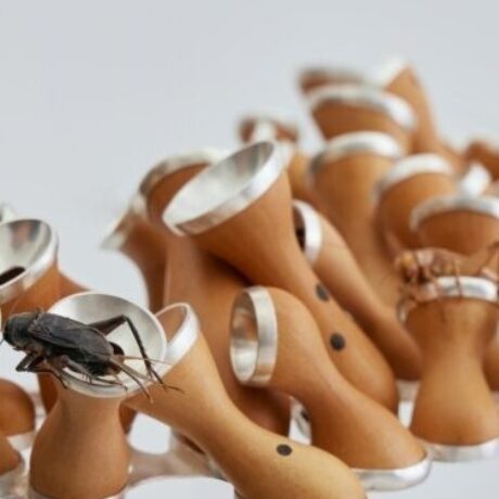Duoduo Lin’s 'Echoed Emotions' collection consists of five groups of work - each rooted in a specific emotion. Working primarily with silver and incorporating varied materials to represent each theme, Lin selects components that reflect specific mental and sensory conditions - reclaimed phone cameras (Tense), incense burners (Expectation), shredded failed paper (Disappointed), organic gourds (Reflective) and finger touch-like acrylics (Touch myself) which is hinting at self inquiry.