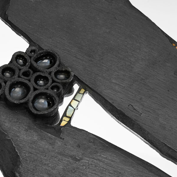 Pushing boundaries with material and texture whist playing with distorted reflections.