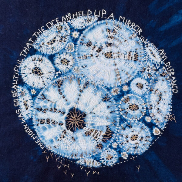 Isabel Bermudez is a Colombian-born poet and textile artist working large, hand-embroidered pieces on silk or barkcloth. She lives in London