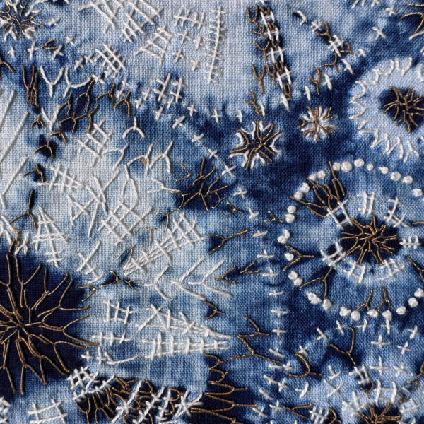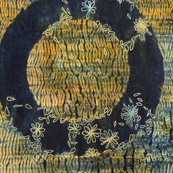 She is inspired by Japanese Indigo and Shibori. In 2023 she travelled to Japan to further extend her knowledge of Indigo dyeing, Shibori and the related processes and techniques. Jude enjoyed a period of study in Japan with Makiko Tokunaga in Naruto, and likewise with Taka Ishii in Fujino. As can be seen in her practice and teaching, she has further developed her skills extensively is clearly influenced by time spent in Japan.