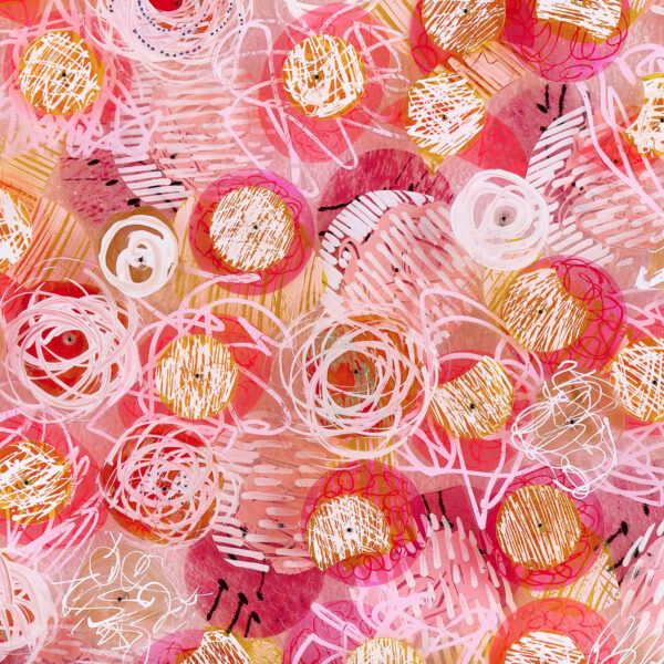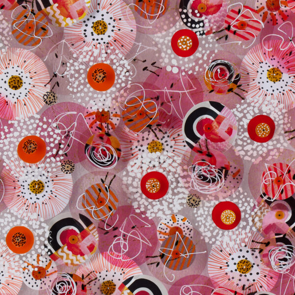 Kas’ work is defined by the layering of shades, tones and transparencies to create complex surfaces that are both tactile and visually engaging. She uses a fusion of diverse processes and techniques to create sophisticated contemporary artworks that have a strong sense of texture and rhythm combined with a sense of musicality in gestures and marks. She works intuitively in an abstract way using vibrant colour, texture and pattern to bring a sense of playfulness and depth to her compositions and it is a process that generates diversions and discoveries along the way so 'what if" is a recurring question. It’s an organic way of working - a subconscious gathering of observations, inspirations and responses to combinations of materials, marks and patterns that percolates over time into layers of ideas and images. She always looks for a balance between complexity and elegance so it’s often in the editing and taking away of elements that the final piece comes into view.