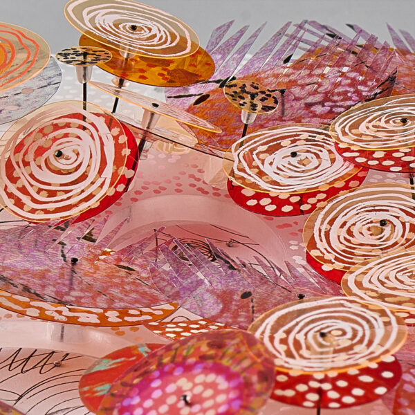 Using a variety of materials Hazel creates mixed media pieces and installations often exploring surfaces and boundaries.