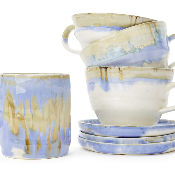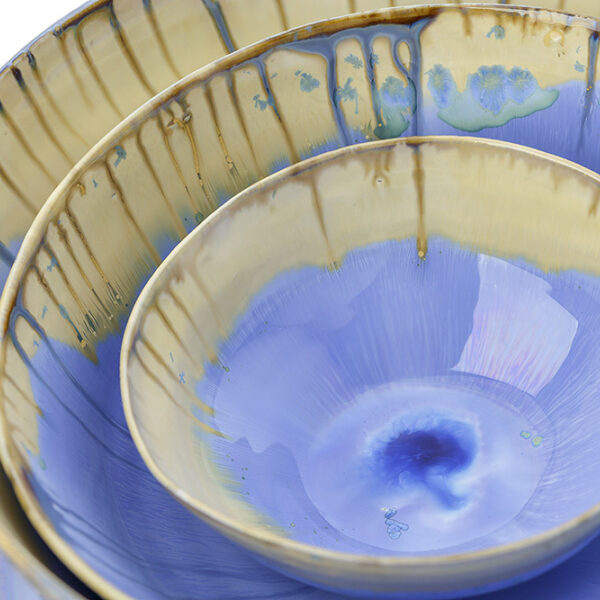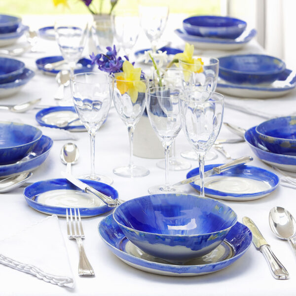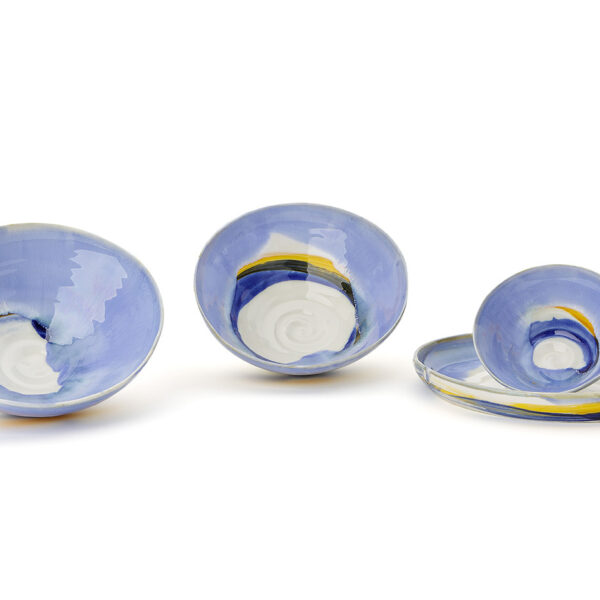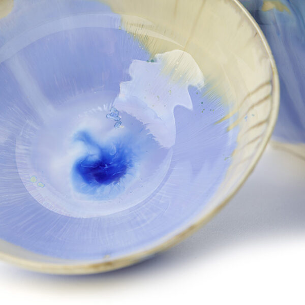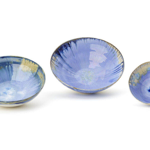 Laura’s work is inspired by the vibrant, subtle colours of the Italian coastline in Liguria where she grew up. The sea and the sky, the sand and the rock, the flashes of colour from cliff-top wild flowers – the mysterious shades of dawn and sunset, all are reflected in her unique iridescent and crystalline glazes.