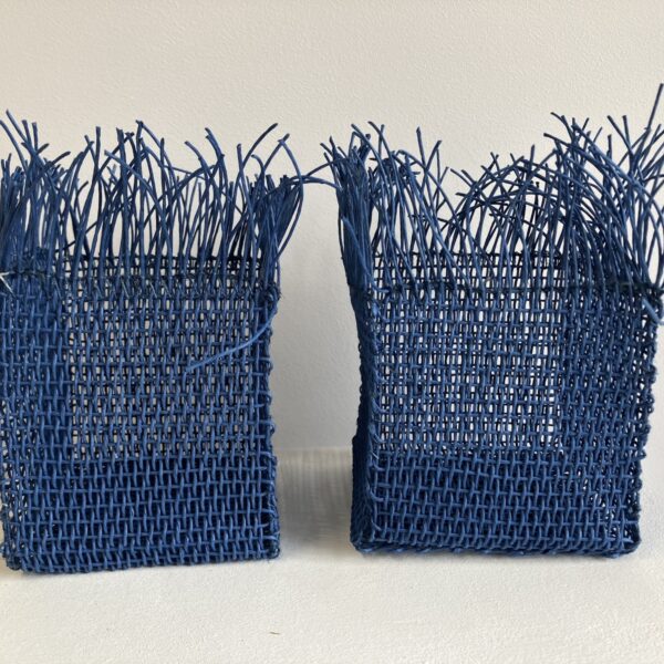 Edna's textural handwoven accessories are characterized by mixing natural yarns, and exploring the unpredictability of Indigo dyed materials