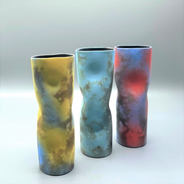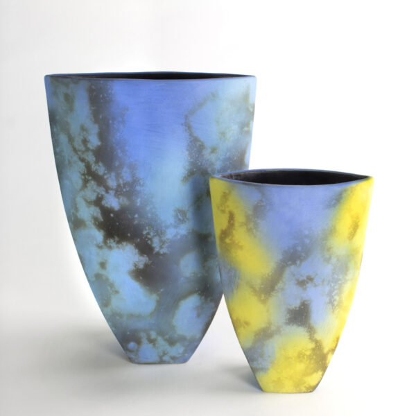 Based in East Sussex, ceramicist Tessa creates both hand-built and slip cast vessels. Depending on their design, hand-built work is assembled with between three and seven slabs of clay. She has two ranges of work – one uses vibrant colours created from refined metal oxides and a controlled smoke firing.