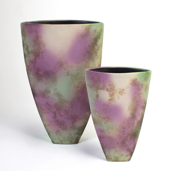 Huw’s work is hand thrown exploring the soft, pliable quality of clay. The finished pots are burnished with slip and saggar fired.