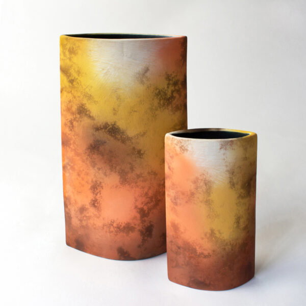 Sculptural vessels inspired by the stacked formations of the coast. Standing tall, precariously balanced: showing strength beside fragility.